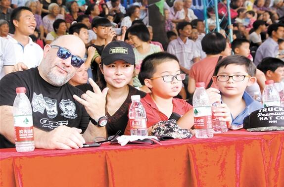 据悉,这是石头村时隔4年再次举办龙舟赛事。虽然昨日上午一会艳阳高照,一会大雨滂沱,但依然吸引了4000多名群众前来观赛,有些还是来自佛山、中山等周边城市的游客。“这是我第一次看中国的龙舟赛,非常喜欢,很想下去试一试。我在意大利威尼斯看过类似的比赛,但没有这么激烈和专业。”在蓬江区经营食品企业的意大利人Corrado(中文名“铁木真”)告诉记者,听闻今年石头村的龙舟赛很精彩,他特别带上中国太太和两个儿子前来观看。
