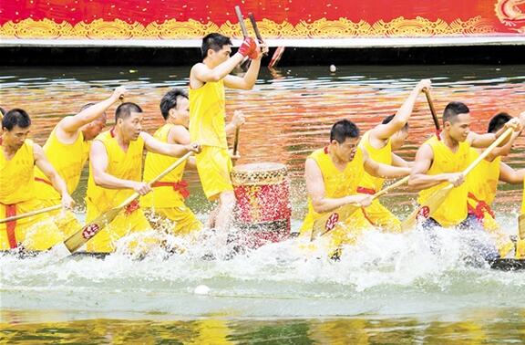 记者了解到,本次龙舟大赛共有七个队伍参加,分别是龙湾腾飞队、白头仔队、水月宫队、蓬莱联队、洪圣宫队、蓝鬚宫队、慈济宫队(排名不分先后),赛程从6月7日到9日,即农历五月初三、初四、初五三天,以大循环的规程进行比赛,采用积分制,以积分多少决出名次。在昨日上午举行的总决赛上,龙湾腾飞队、白头仔队、蓝鬚宫队最后积分相同,不得不在午后增加延长赛,经过一轮激烈的小循环赛,白头仔队、龙湾腾飞队、蓝鬚宫队分别获得了冠亚季军。为了弘扬龙舟传统文化,锦富汇景湾特别赞助了本次龙舟赛,前三名龙舟队分别获得5万元、4万元、3万元奖励,其他4个优胜队获得了2万元奖励。