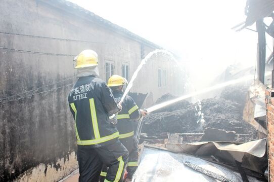 昨日9时45分,蓬江消防大队接到报警称,棠下镇罗江幼儿园附近仓库着火,火势猛烈。得知情况后,消防部门立即出动4台消防车、24名消防官兵赶赴现场救援。