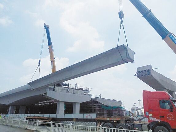 5月30日,由中铁江门大道第十一标段项目部承建的江门大道主要控制性工程——迎宾西路高架桥右幅预制梁架设完成,右幅桥梁顺利贯通。