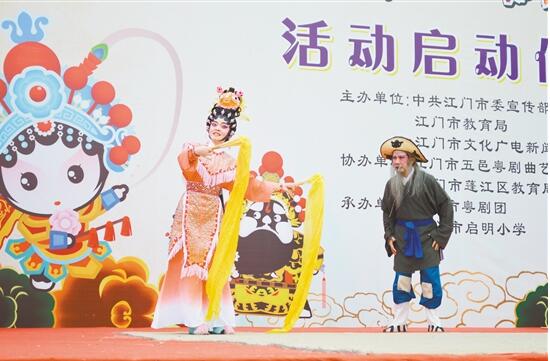 “启明小学的同学仔,你们有没有见到我的大师兄孙悟空?”“见到了!”粤剧享有“南国红豆”之美誉,5月24日上午,2016年江门市“红豆飘香进校园”活动启动仪式在启明小学校园内举行。市委宣传部、市文广新局、市教育局相关负责人以及学校、家长代表和近2000名师生参与了启动仪式,欣赏了市粤剧团表演的精彩粤剧折子戏。