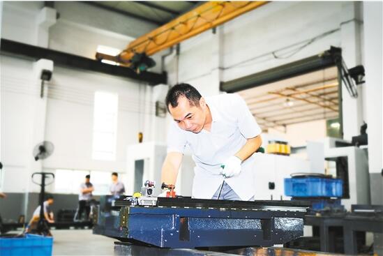 “刚入职时,我什么都不懂,只能一点点学。”李更祥说,从机械装配、刮削调配到主轴、气管油管装配等,每一道生产工艺都要仔细研究,反复练习。凭着自身的专业技术,以及从前工作经验的累积,李更祥很快就摸熟、摸透了雕铣机的生产工艺。尽管对业务熟悉,但他并没有因此而马虎工作,反而对机床机械生产的每一个工序都严格要求自己,让自己安装的每一个工序的装配精度不断提升。