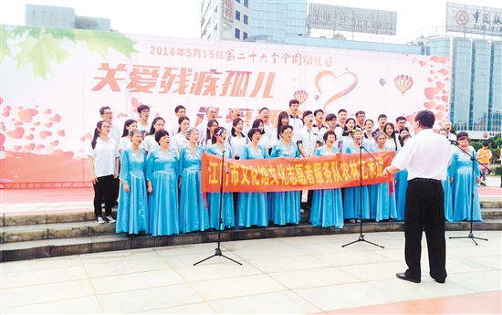5月15日,蓬江区白沙街道办事处在东湖广场举办第26个“全国助残日”活动,本次活动以“关爱残疾孤儿 让爱洒满人间”为主题,蓬江区委常委、白沙街道党工委书记黄达斌,白沙街党工委副书记、办事处主任谢强伟,蓬江区残联理事长元君等出席活动。