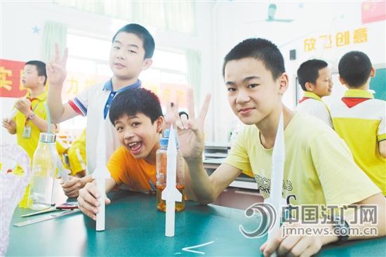 蓬江区教育局自今年3月中旬便开始了对全区各创客辅导老师的项目培训活动,该项目便是其中的一项。比赛分为直线比远赛与穿环赛两个环节,两人一组,每人每项2次机会,取各轮总成绩排序。比赛中,学生根据要求,用一张A4和固体胶自制一支纸火箭,并通过一根长20厘米、直径2厘米的pvc管吹出参与两项比赛。其中来自紫茶小学的刘禹奇与张诚晖以比远赛两人四次共90.3米和穿环赛满分的好成绩荣获总分第一名;同时,来自周郡小学的黎胜耀也表现不俗,凭借24.98米的好成绩,以5厘米的优势取得单次比远赛第一名。