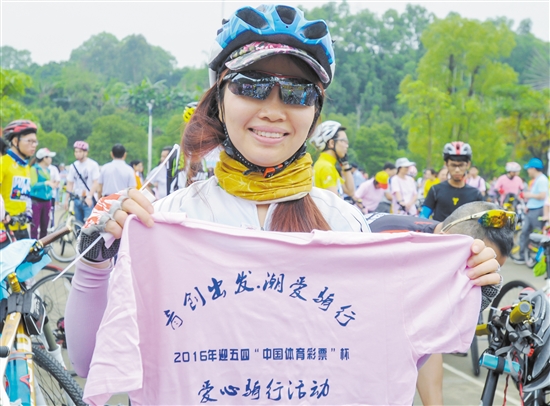 参加骑行的靓女展示“战袍”。