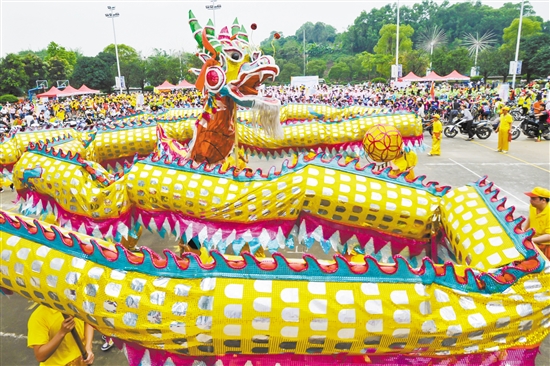 潮连金龙为骑行活动助兴。