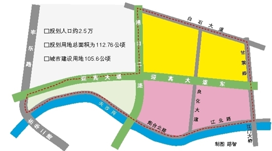 以港口路和迎宾大道为发展轴 西部以旧厂改造为主 南部以旧村改造为主 北部主打现代居住