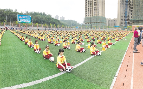 昨日,我市“一百百”足球工程启动暨足球特色(试点)学校挂牌仪式活动,在蓬江区范罗冈小学举行。此次挂牌仪式,也标志着范罗冈小学成为我市第一所足球特色试点学校。