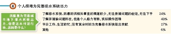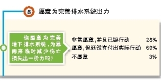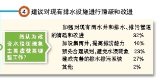 您对您居住的片区周围道路排水设施情况满意吗?近日,记者在江门日报微信公众号上发起网络调查,一共有300多名市民参加投票,只有四成参与调查者对道路排水设施满意,九成多参与调查者愿意为完善地下排水系统、为暴雨来临时减少伤亡损失出一份力,但因各种原因,只有三成参与调查者表示能付诸行动。
