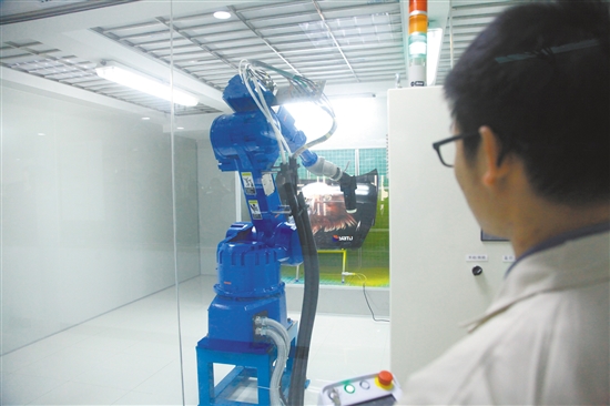 鹤山市雅图高新材料有限公司内的机械手。