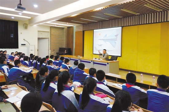 “往年举办过地理、环保、科学与生活等主题的讲座,今年特别申报了陈洪研究员的“军用飞机与现代空中作战”,学生们了解到国家有这样高端的技术,爱国热情一下子被激发出来。”怡福中学教务处主任冯福海告诉记者,这已经是怡福中学第四次迎来“科普考察团”,听完讲座后,学生们不仅学习兴趣高涨,对现代科学技术更加了解,同时也学到了科学家严谨的科学精神。