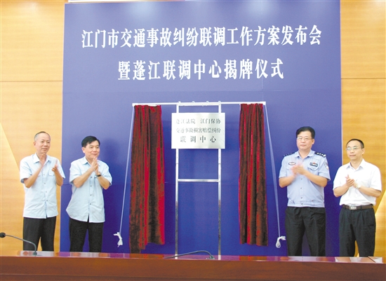 为此,2014年8月,蓬江法院与市保险行业协会建立联调工作机制,经试运行1年后,2015年8月由市中级法院、市交管局、市保险协会联合制定《江门市交通事故纠纷联调工作方案》,并正式成立蓬江联调中心。“这意味着形成从事故责任认定、交警调解,到保险公司理赔,再到法院审判的完整纠纷解决渠道。”市中级人民法院院长叶柳东说。