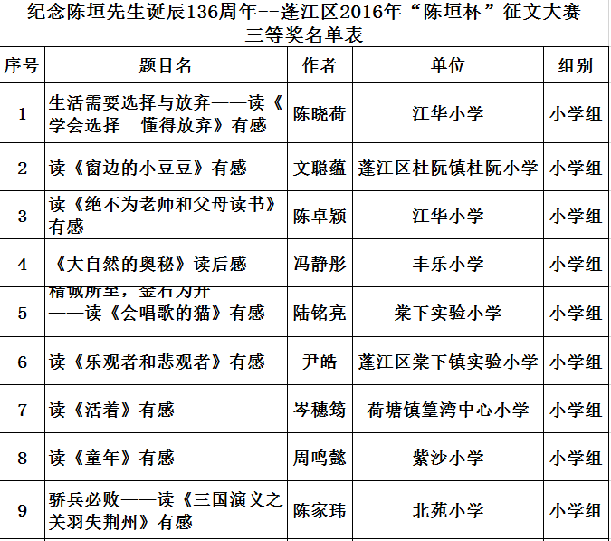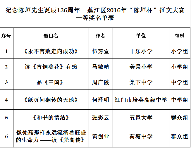 纪念陈垣先生诞辰136周年--蓬江区2016年“陈垣杯”